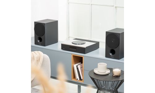 Om alles visueel samenhangend te houden, leent de SA-C600 stijlelementen van Technics draaitafels, waaronder kleur, textuur en afmetingen, waardoor het systeem een gestroomlijnde en uniforme uitstraling heeft. Bovendien bevat het aluminium bovenpaneel een handige CD-speler met een handmatig te bedienen deksel, wat zowel praktisch als een elegant tintje toevoegt aan de opstelling.